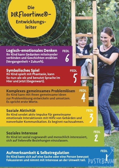 - Das D steht für Development (Entwicklung) und für einen entwicklungsorientierten Ansatz. Die Therapeutin setzt nicht bei der üblichen Entwicklungsstufe des entsprechenden Alters an, sondern bei der aktuellen Stufe des Kindes.